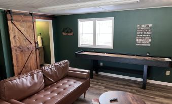 Second living quarters is two stories and only several feet from the main house. The first floor is a recreation room with shuffle board table, darts, and other games. First floor includes a half bath. Second floor is a loft that has two queen size beds. The second living quarters also has a mini fridge, coffee maker, and microwave. The walkway to the second living quarters is brightly lite at night.