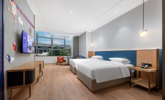 The hotel is located in the Central Vitality District of Xintiandi, Hangzhou, in the north of the city, within the red-brick building of Building B at Starlight Cultural Plaza. With its prime location, it is adjacent to the Xintiandi Sun Theater and close to the Xilingyin Group. The hotel offers convenient transportation, near the Hangzhou-Ningbo and Shanghai-Kunming highways, making it easy to reach cities in the Jiangsu-Zhejiang-Shanghai region. Nearby, in addition to large shopping malls like Xintiandi Shopping Center and Zhongda Intime City, as well as art centers, the hotel is also close to Ban Mountain Canal Hanggang Park and the Hangzhou Youth Palace Ban Mountain Branch. The surrounding area is filled with various cafes, themed restaurants, the Hangzhou Esports Center, trendy bars (UF Channel Bar, Wenke Bar, Xiang Livehouse, Pitch Bar, etc.), and office buildings such as Handing International Tower, Xianheng Technology Tower, Xintiandi Sega Junzuo, and Hangbang Group. While enjoying the cityscape, guests can also experience a modern urban lifestyle that blends art and shopping. Industrial heritage is not merely cold, dilapidated remnants on the surface but a cornerstone that carries the memories of the past and the dreams of the present. The hotel, inspired by the architecture of the former Hangzhou Heavy Machinery Factory, has undergone a magnificent transformation through the collision with modern industry, creating a boutique design hotel with social space attributes. The red-brick hotel, listed as a cultural relic, features uniquely styled guest rooms and is equipped with advanced facilities such as smart controls, deeply catering to the lifestyle of young groups. It has become one of the newest trendy打卡 spots in Hangzhou. In collaboration with the Hangzhou Library, the hotel has established a nearly 500㎡ sunken book bar—the Hangzhou Library Tourism Culture Branch—in the lobby area. Additionally, it includes a themed restaurant (Li Bai Library Restaurant), an IN Theater, SPA, gym, and a fully automated smart laundry room. The hotel also offers castle-themed family rooms and smart family suites, providing a diverse, high-quality accommodation space that fully meets the needs of business travelers and family tourists. We always strive to find a balance between work and life, visiting every city and cherishing every encounter and stop along the way. Embarking on a new journey of "balanced living," you can "live in history and sleep in legend, with half of Hangzhou's industrial history.".