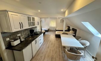 Einen Wasserkocher oder eine kleine Kaffeeecke auf dem Zimmer wäre schön gewesen.