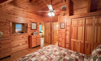 Had a great time beautiful cabin except you can’t enjoy the swing in the front nor the patio on the back due to flies and mosquitoes so I recommend installing a reversible fan in both locations where you have the single light, also install tvs in the bedrooms.