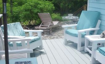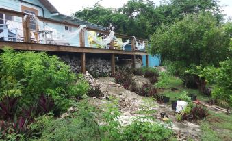 The gardens are lush with native trees, fruits and flowers which attract a wide array of birds and butterflies. The property lies on a sweet tidal creek where we have our private dock for kayaking & paddle boarding tours.