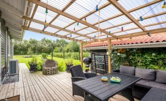 Single-family house, built in 1986. 7.2 km from the sea. For shared use: garden. Private: natural state property 987 m2, garden (fenced). Terrace (26 m2), barbecue. In the house: washing machine. Parking at the house. E-charging station. Grocery 800 m. The owner does not accept any youth groups. "Fritzie" - 600m to the fjord", 2-room house 59 m2. Object suitable for 4 adults. Living room with TV. 1 room with 1 double bed. 1 room with 1 double bed. Kitchen (oven, dishwasher, 4 ceramic glass hob hotplates, microwave, freezer). Shower/WC. Terrace 7 m2, roofed. Facilities: Internet (WiFi). Please note: non-smokers only. Maximum 2 pets/ dogs allowed. Bookings accepted for holiday purposes only. 760-4491
