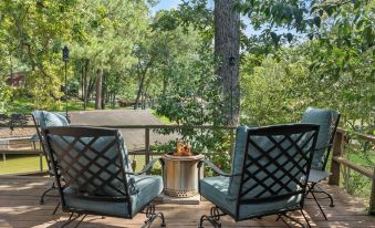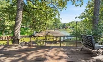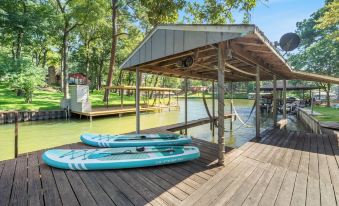 The large wood deck is a tranquil oasis! It offers comfortable seating, a Solo Stove fire pit, gas grill and beautiful views of the canal (open water is just around the corner). Head down the stairs for direct water access to fish (tons of catfish, crappie and bass!) or hop on one of the included paddle boards and go exploring!