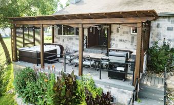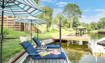 Get away from it all in this lovely lakefront cottage perfect for families or small groups. This house is located on a secluded cove and boasts three levels of decks, each with something to offer. Watch movies from the hot tub on the outdoor pull-down projector or grill your dinner and dine outside under the custom pergola. This deck also features an outdoor sink, stone countertops, and a mini fridge. Roast marshmallows or enjoy drinks by the firepit on the middle deck—you’ll find ready-made smores kits in the kitchen! Savor your morning coffee or evening cocktails on the lowest deck right over the water, or open the umbrellas and lounge with a blender of margaritas in the afternoon! This deck includes a power supply so you don’t even have to go back inside.