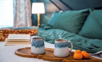 Indoors, you’ll find a newly renovated space with a king bedroom and queen bedroom as well as a complimentary queen-size airbed available to sleep two more. Enjoy a cozy fire on chilly nights in the wood-burning fireplace (wood provided), snuggle up with a good book, or enjoy a family game night at the dining table. There’s high-speed wifi throughout. Living room boasts a 65 inch smart TV and king bedroom has its own mounted smart TV as well. All towels, cotton sheets, bedding, spare blankets, closets with hangers, bathroom toiletries, and amenities are available so you can truly unwind worry-free.