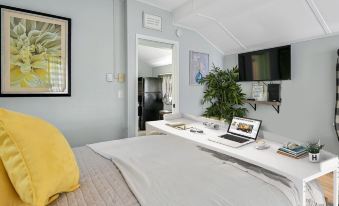 Loved this little cottage. I will definately use it again. It's the perfect set up for myself and 2 small dogs. Having a fenced in yard is incredible, plus charming neighborhoods to walk through.