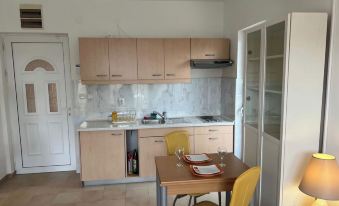 Apartman je kompletno opremljen, sadrzi opremljenu kuhinju, TV, internet, kupatilo sa ves masinom, terasu sa pogledom na more, privatnu bastu sa lezaljkama.