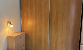The apartment has a kitchen with a stove, fridge, and all the kitchen appliances, utensils and cooking basics ( pots, pans, spices ), there is a laundry machine in the bathroom, there is an AC and heating, and lots of space outside in the private yard to dry towels, leave water inflatible toys etc.
