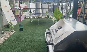 Experience comfort and convenience in this spacious 220 m² (2,368 ft²) home located in the exclusive Condominio Terrafe in Heredia. Just 15 minutes from the airport and a short drive to the popular Mall Oxígeno, this modern retreat is perfect for up to 7 guests. It features a rooftop with breathtaking views of the Central Valley and, on clear days, the Pacific Ocean. Amenities include a heated swimming pool less than a minute’s walk away, a private trampoline, and playgrounds for kids. Situated in a gated community with 24-hour security, this home is the ideal base for exploring Costa Rica. For added convenience, guests can rent a 7-passenger Honda Odyssey to enhance their stay!About pets:No pets allowed.About children:Children allowed: ages 0-17.About smoking:Smoking is not permitted.About events:No events allowed.
