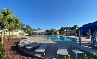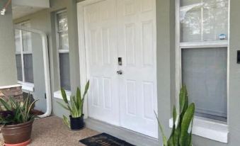 The home was close to many stores including Walmart and Publix, including a number of restaurants and bars. Everything in the kitchen you would need. A comfortable screened in patio area. TV in each bedroom. Hot show showers.