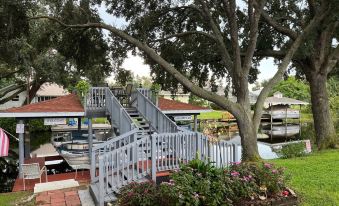 The backyard view and canal access is a highlight of this property. Ascend to the boathouse's rooftop seating area for panoramic views of the canal with comfortable shade from overgrown trees. And when you're ready to get on the water, it is only a short ride down the wide canal to sandy bottom Lake Grassy.