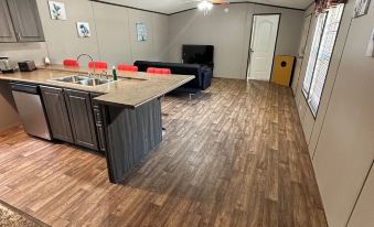 everything is brand new, the cabin is brand new and there is parking for 1 car. Also there is a marina with a ramp for boats to the lake and a nice dock for boat docking with additional chargeAbout pets:Pets allowed: dogs less than 20 lbs per pet (limit one pet total).Pets will require damage deposit.About checkOut:Check out before 11:00 AM.About children:Children allowed: ages 3-17.About checkIn:Check in after 3:00 PM.About smoking:Smoking is not permitted.About events:No events allowed.