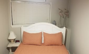 The bedroom has a queen bed, closet and TV and the living area has a sleeper sofa. The living/kitchen area is open and the kitchen is fully stocked (pots, pans, cooking sheets, serving and eating utensils, dishware, glassware, tupperware, etc...) so you can enjoy meals without having to go out to eat all the time. A Keurig and a standard drip coffee maker are provided as well as a Ninja blender, a slow cooker, toaster and microwave. You are provided with fluffy bath towels, hand towels, wash cloths and beach towels as well as paper products.