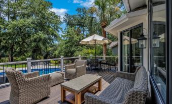 Retreat to our newly renovated 6 Off Shore in Palmetto Dunes Oceanfront Resort, where up to 12 guests can unwind in style in 4 luxurious suites. This bright, airy home is perfect for a relaxing getaway or family reunion, boasting a FREE heated pool and lagoon views from the spacious backyard with dock access. Enjoy the resort's renowned amenities: tennis, golf, lagoon system and miles of scenic, shaded paths. Just .6 miles from the sandy beaches!