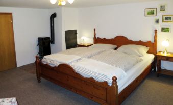 Historical farmhouse "Bistenhof", from the 17th century, renovated in 2017. In the district of Bisten 2.7 km from the centre of Hinterzarten, 11 km from the centre of Titisee-Neustadt, 30 km from the centre of Freiburg im Breisgau, 7 km from the lake. Private: property 300 m2 with meadow. 15 m footpath to the house. Parking (for 2 cars). Shop 2.7 km, bus stop "Hinterzarten Busbahnhof" 3.1 km, railway station "Hinterzarten Bahnhof" 3.1 km. Golf course (18 hole) 7 km, walking paths from the house 15 m, ski lift 20 km. "Bistenhof", 4-room semi-detached house 110 m2 on 2 levels. Partly renovated in 2017, rustic and cosy furnishings: living/dining room with dining nook, satellite TV and tiled stove. 1 room with 1 double sofabed (160 cm). Exit to the garden. Kitchen-/living room (oven, dishwasher, 4 ceramic glass hob hotplates, toaster, kettle, freezer, electric coffee machine) with dining nook. Shower/WC. Upper floor: 2 rooms, Low door height 170 cm ceiling height 170 - 180 cm, each room with 1 double bed. Bath/WC. Gas heating. Wooden floors, carpet. Patio. Terrace furniture, barbecue (portable), deck chairs. Facilities: children's high chair, baby cot. Internet (WiFi, free). Please note: suitable for families. Non-smokers only. Private entrance, smoke alarm.