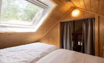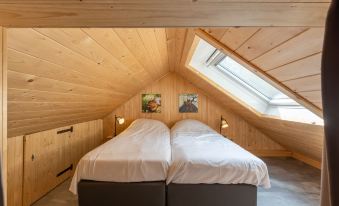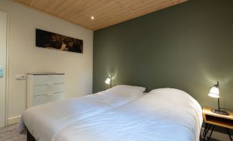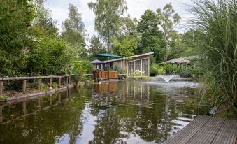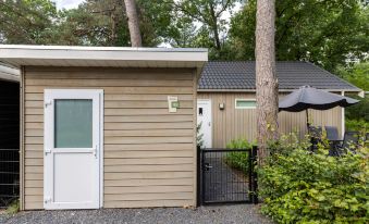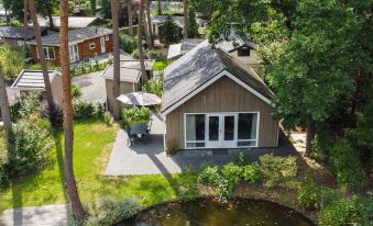 Hoenderloo 23 km from Arnhem: Child friendly holiday development "De Rimboe & De Woeste Hoogte", surrounded by trees. For shared use: swimming pool heated (seasonal availability: 01.Jan. - 31.Dec.). Children's pool, table tennis, children's playground (swing). In the complex: reception, restaurant, laundry. Bread roll service (extra). Central parking spaces. E-charging station. Shop 2 km, supermarket 2 km, bus stop 2 km, park "Nationaal Park De Hoge Veluwe" 4 km. Nearby attractions: Jachthuis Sint Hubertus 8 km, Kröller-Müller Museum 15 km, De Apenheul in Apeldoorn 16 km, Burgers' Zoo in Arnhem 17 km, Paleis het Loo 18 km, Kinderpretpark Julianatoren in Apeldoorn 19 km. Please note: entertainment in the season. The photograph shows a typical example. All houses/apartments are individually designed/furnished. "Boslodge", 2-room chalet. Comfortable furnishings: living room with flat screen. Exit to the terrace. 1 room with 2 beds. Open kitchen (dishwasher, Gas stove, 4 gas rings, toaster, kettle, electric coffee machine, combination microwave) with dining table. Shower/WC. Heating, air-conditioning. Upper floor: (open staircase) mezzanine with curtain with 2 beds. Terrace. Terrace furniture, box-room. View of the lake. Facilities: Internet (WiFi, free). Parking at the house. Please note: non-smokers only. Bookings accepted for holiday purposes only.