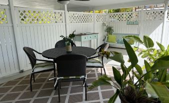 If you thought the pictures were great, get ready to be wowed! Jeannine's property is everything and more. It is recently renovated and pristine. I've stayed at quite a few VRBO's so I can appreciate a good one, but this one is great. Jeannine goes out of her way to give her guests the best experience. She provided the cutest little starter packets of Keurig coffee, creamers and sugar in the kitchen and toiletries in the bathroom. She even provides a fresh wrapped sponge in the kitchen sink. These little touches mean everything. The kitchen is well appointed for cooking, reheating and eating. The living area is lovely with a comfy couch and smart TV. The bed has luxurious linens and the most comfortable mattress I've ever slept on. There are also plenty of towels for showering and the beach. As if all that isn't enough, the beach is literally 150 steps away and the backyard of this property is a secluded tropical oasis. The house is ideally located, not far from restaurants and shopping. We cannot wait to come back.