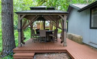 Love the vibe, the creek, the gazebo, sipping a refreshment w/friends. Close to the lake, Cushman is beautiful. Will stay again!!