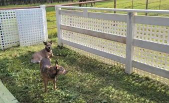 Max. 2 adults/1 child. Space has a private, full bathroom, kitchenette & dining area with a private spa & outdoor dining. You will have access to a full kitchen for group meals. A large barbecue is on the front patio with a community fire pit nearby. Miles of hiking trails out our back gate. The arena doubles as an area for sports, horseshoes, etc. WIFI in central areas. Free parking. $50 per pet/horse per stay. Guests must sign a release. Relax, Refresh, Renew here in the piney woods.