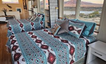 3 huge bedrooms, 3 1/2 baths, two large sitting areas including a Great Room with 85" smart TV, fiberoptic GB internet, a stage area, an office with amazing 270-degree views, a chef's kitchen with premier appliances, an elegant dining room and table that seats 10, and featuring museum-quality custom art by acclaimed artist Joan Hanley. Heated floors throughout, and air conditioning in master bedroom.About pets:No pets allowed.About checkOut:Check out before 12:00 PM.About children:Children allowed: ages 0-17.About customRules:Instant Booking available only for guests with pos.No same day check-in/check-out. (I can't book arr,Riding of 4-wheelers or motor bikes on the property is strictly prohibited except for on the driveway..About checkIn:Check in after 2:00 PM.About smoking:Smoking is not permitted.About minBookingAge:Minimum age to rent: 25.About events:No events allowed.Prior permission required by owner..