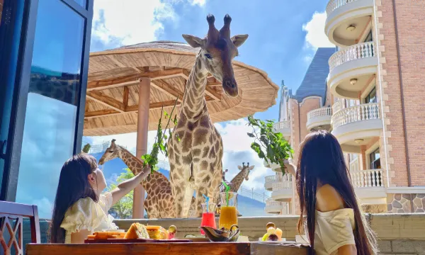 Quanzhou Oulebao Giraffe Manor HotelChina's First Coastal Giraffe Manor HotelWilder than the Maldives, closer than KenyaPerched on one of China's most beautiful coastlines in the Taiwan Business Investment Zone of Quanzhou, Quanzhou Oulebao Giraffe Manor Hotel is the first coastal giraffe manor hotel in China, meticulously crafted by Quanzhou Oulebao Resort. It masterfully and romantically fuses the wild allure of the vast Kenyan grasslands in Africa with the warm, azure coastal charm of Quanzhou, Fujian, thus creating China's "coastal giraffe-themed holiday manor".Stepping into the hotel, you'll find yourself in a carefully constructed natural fairy tale. While enjoying the private caress of sea breezes and the sound of waves, you can stay in 40 uniquely designed themed suites such as "African Grassland", "Wild Luxury Viewing" and "Maasai Style". Each suite is a hidden oasis away from the hustle and bustle. The interior of the rooms is a perfect blend of art and wildness. Everywhere you look, there are hand-painted murals depicting African Kenyan grassland scenes by skilled artists — the afterglow of the setting sun, galloping giraffes, and herds of wildebeests kicking up clouds of dust. These vivid paintings seem to bring the distant African land right before your eyes. The ingeniously designed treehouse spaces exude a rustic and warm atmosphere. Open the door to the private balcony, and a pleasant surprise awaits — an exclusive space for intimate interactions with the manor's star residents, the elegant and gentle giraffes. When the first ray of morning sunshine falls, holding fresh branches and leaves, the giraffe's long neck slowly extends, and its deep, curious eyes gaze softly at you. This wonderful, within-reach experience will become a precious memory that lasts a lifetime.The prelude to this magical journey can start with a one-of-a-kind breakfast. In the hotel's specially designed characteristic restaurant, outside the huge floor-to-ceiling windows, giraffes are strolling leisurely, their tall figures forming the most lively backdrop during the meal. Savoring delicious dishes while having breakfast with the "grassland gentlemen" outside the window, this wild breakfast where humans and nature coexist harmoniously will surely add an extraordinary sense of ritual to your journey.The adventures at Giraffe Manor Hotel go far beyond giraffes. The exclusive pet park adjacent to the hotel is a world of animal interactions filled with laughter. It's a paradise for children and also a haven for the young at heart. You can wander leisurely and encounter dozens of lovely creatures from around the world: flocks of flamingos standing gracefully like pink clouds, elegant black swans gliding in beautiful arcs on the blue waves; lively and clever ring-tailed lemurs may jump onto your shoulders, and cute little raccoons take food from your hand with their small paws; rare red pandas lie lazily on tree branches, and leaping kangaroos show off their strong hind legs; there are also zebras strolling casually, ostriches running like the wind, and more. Under the guidance of professionals, you can safely participate in interactive feeding, feel the warmth of the small animals' wet noses touching your palm, listen to their contented murmurs, and experience the pure joy and connection that life brings.The hotel boasts a privileged geographical location. The carefully built viewing garden in front of the hotel is blooming with flowers all year round, making it a cozy spot for morning walks and evening relaxation. Beyond the garden, the view suddenly opens up, with the vast blue sea stretching as far as the eye can see. The magnificent scene of the sea and sky merging into one is refreshing and delightful. This unique scenery of leaning against "forest treehouses" and facing "blue seas and golden sands" maximizes the sense of relaxation during the vacation. Meanwhile, as a core part of Quanzhou Oulebao Resort, the hotel offers you excellent convenience for seamless access to the resort's rich entertainment facilities. Whether you're heading to Oulebao Ocean Kingdom to explore the secrets of the seabed, or to experience the Fairy Tale World and Water World, the convenient shuttle service allows you to easily realize the perfect vacation idea of "staying and playing in one place".Quanzhou Oulebao Giraffe Manor Hotel, with its irreplaceable coastal giraffe theme, artistic hand-painted treehouse suites, in-depth immersive animal interaction experiences, and superior environment with both mountain and sea views, sincerely invites you to open the door to this magical world with your beloved family and close friends. Here, every day will be filled with novelty and surprises, and every moment will become a warm story worth cherishing. Start your Quanzhou Oulebao journey, let the greetings of giraffes be the first note of a wonderful holiday, and enjoy your unique and perfect vacation in this wonderland where mountains, seas and grasslands blend.