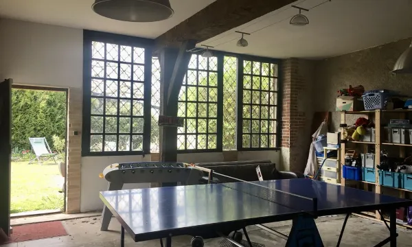 A storage for bicycles is available as well as a relaxation area 50sqm open access (on the ground floor of the house, accessed by the court). This space offers a games area with table tennis, table football and various games.