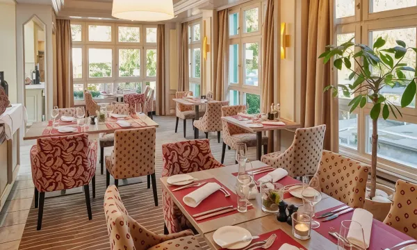 Regional specialties are served in the Kallbach restaurant, and light meals are available at the café. In warmer weather gusts can even dine outdoors on the terrace.
