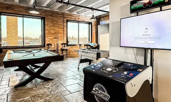 Pool table, foosball, darts, vintage arcade games (in-suite, set to free play)