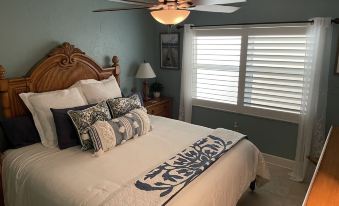 The complex also features a coin laundry across the hall, an outdoor pool (please understand that the pool was severely in damaged after the hurricanes and repairs are still on going), direct access to the beach and is just steps from Salt Rock Grill. Enjoy a round of mini golf at the course across the street. The master bedroom is outfitted with a king bed for two, or use the two portable air mattresses which come with an electric pump stored in the hall closet to accommodate extra guests.