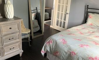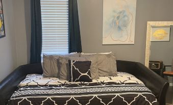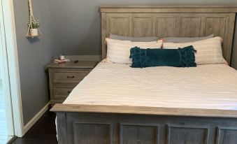 Very clean. Comfortable beds. Newly remodeled bathrooms. Snacks and amenities available. Older house. Could use a soap/shampoo holder in the shower. Replacing the single nightstand in the master bedroom with two smaller ones would allow more flexibility.