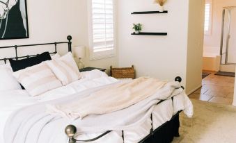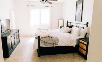 The master suite sits separate from the other two bedrooms in the house and has a large plush cal-king bed with private access to the back yard. You will also have your own private master bath suite with separate shower and soaking tub. Enjoy two separate sinks, and a large walk-in closet.