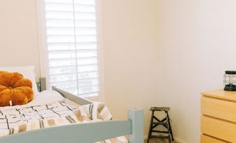 The bunkbed room is the perfect room for the kids. Bunkbeds are large enough to accompany adults. There’s also a closet with chest of drawers in the bunkbed room.