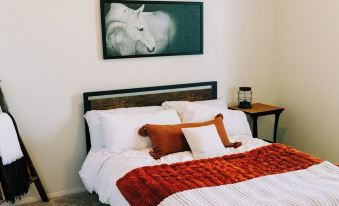 The queen bedroom sleeps 2 comfortably for those traveling with multiple family members. This room also has its own closet.