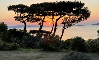 The 26.9 tatami mat living and dining area features a stunning ocean view of Nagura Bay