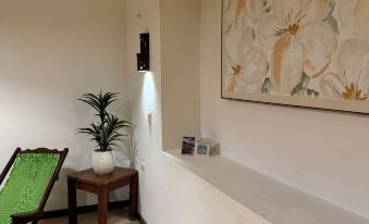 This property is really gorgeous, the pool is in the courtyard inside and surrounded by plants and an area with tables if you want to work outside. Every room has its own little patio or balcony with a table and a swing for the ones on the ground floor. There's a few cats around that were all friendly. The area around the hotel isn't the nicest and you do need to drive into the main tourist part of town but there are restaurants in walking distance. There's no fridge in the room but there was a large fridge in the common area that we were able to use. If you're coming to this town we do recommend coming on the weekend, we did not and a lot of restaurants were closed during the week, however we didn't have any issues finding food while we were there though we did go a few days without coffee. Overall really pretty property and the room was nice and comfortable.