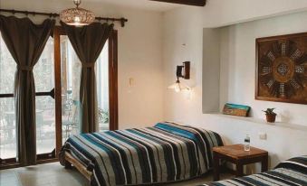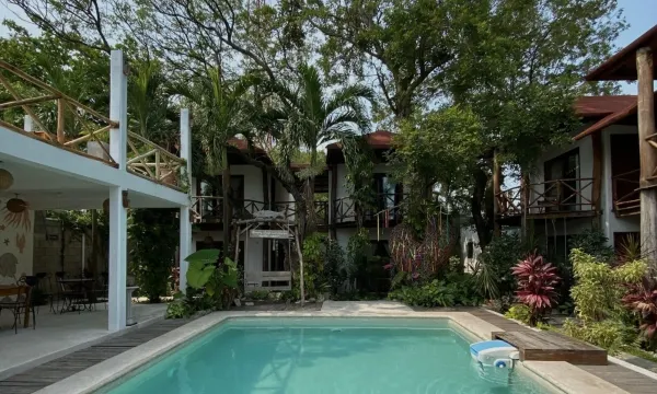 Lovely setting of 12 rooms around a decent sized pool and covered table areas with a cafe. Rooms are generously sized with comfortable beds. AC worked really well but not needed during the day as fan and cross ventilation was enough. Plenty of hot water in the large shower. Importantly it had screens over the windows and doors going to the terrace or balcony. A class act. Good food at Don Guillermo resteraunt on the beach to the left of the tourist pier. Street has a galleon ship at its start. Very chill relaxed place but closes up early.