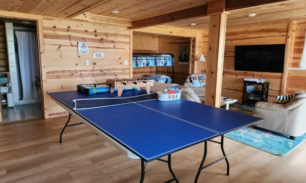 The finished basement is practically self-contained, with a 3/4 bathroom and an open dining, living, sleeping. The games include XBox (connect to your account), ping pong, mini-foosball, mini-air hockey. For an extra $50 fee, a queen air mattress can also be provided. Access to the basement is via the 2nd bedroom, so a privacy screen is provided to close off that room.