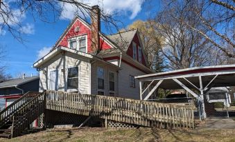 The full-service kitchen is stocked with the basics. Cook yourself a great Ithaca meal. The kitchen leads to a large 3-season room that overlooks the large fully-fenced yard & garden.There's steps down and a wood-railed access ramp leading to the carport. Guests enjoy the generous backyard s garden pace with peace and privacy.