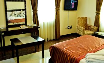 Hotel Apartment with living room, kitchen toilet and bedroom. But furnishing and bathroom are a bit rusty and needs attending to. Some bathrooms have smells oozing out of them. Perhaps something wrong with drainage. Complimentary breakfast for one guest only. Proximity to the airport