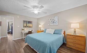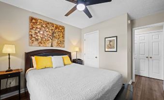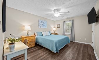 The comfortable master suite features king size bed, private bathroom, 2 dressers, and a walk in closet. All beds and pillows are fully encased. All bedrooms have flat screen TVs with streaming capabilities. All bedroom closets have extra blankets. The master bedroom features a large writing desk with space to set up your laptop. The home's Wi-Fi is super fast.