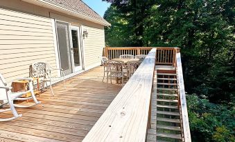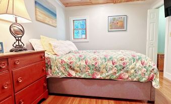 The apartment has two bedrooms, each with its own unique charm. Bedroom 1 has a comfortable double bed, with direct access to the deck. The second bedroom is cozy and functional, with a memory foam queen-size bed, smart TV, and a closet to store all your winter gear and clothes. The bathroom has custom tilework and a spacious shower and there is a washer and dryer off the kitchen, allowing you to pack light!