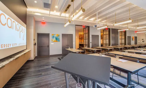 Hello and welcome to Canopy by Hilton Jersey City Arts District, a fun and vibrant new lifestyle hotel in the heart of downtown Jersey City. Surrounded by endless restaurants, art galleries and transportation options, the attractions and entertainment of Jersey City and New York are just minutes away. Take one of our complimentary Canopy Bikes to explore the neighborhood, use the PATH train station next door or rideshare.