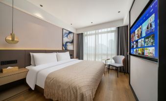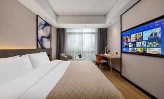還不錯,服務熱情,離高鐵站打滴滴過去八九塊錢,有機器人服務,外賣什麼的也很保護私隱,崽崽喜歡,房間內的小愛小愛智能聲控,但有時候會反應慢,房間熱水水流挺好,早餐也還可以,樓下就是社區,有個廣場,晚上有跳廣場舞的,多少有點噪音,但不會太晚,我們習慣晚睡,不影響,睡眠質量要求高點的可以換另外一邊的房間,整體不錯。可以選擇。