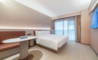 Hanting Hotel (Guigu Park Branch) is located in Building 1, Hezhong Commercial Plaza, No. 1988 Renmin Avenue, Luoxing Street, Jiashan County. It is 9 kilometers away from Jiashan South High speed Railway Station and a 20 minute drive away. The hotel is adjacent to Jiashan Guigu Smart Manufacturing Town and adopts a brand new design with gentle low saturation color matching, simple and smooth rounded curves, and an Oriental scholarly atmosphere that does not lose cultural heritage. The hotel rooms are on floors 23-26, totaling 4, with a total of 92 rooms. The rooms are equipped with digital TV, stylish bathrooms, office desks, free parking lots, self-service breakfast, self-service luggage lockers, self-service laundry rooms. All staff of Hanting Jiashan Guigu Park Hotel provide warm and thoughtful service, looking forward to your visit.