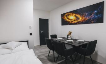 Historical apartment block "U Doskočilů", 3 storeys. In the centre of Jindčichův Hradec, in a central position. In the house: central heating system. Parking (extra) at 200 m. Grocery 100 m, restaurant, café 20 m, bus stop "Jindřichův Hradec,nám.Masarykovo" 220 m, railway station "Jindřichův Hradec" 1.3 km. Nearby attractions: Zámek Jindřichův Hradec 300 m, Nežárecká brána 400 m, Třeboňsko 6 km, Kovářka 12 km. Well-known ski regions can easily be reached: Čihadlo 14 km. "Historic Centre", 2-room apartment 43 m2 on 2nd floor. Entrance hall. Living/sleeping room with 1 double bed and TV (flat screen). 1 room with 2 beds and dining table. Kitchenette (oven, dishwasher, 4 ceramic glass hob hotplates, kettle, microwave). Shower/WC. Facilities: hair dryer. Internet (WiFi, free). Please note: non-smokers only.