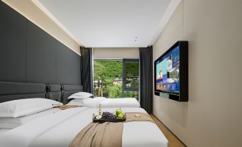 The hotel design is modern and simple, fashionable and avant-garde, transparent and bright. The rooms are fully equipped, with various room types such as sunny rooms, parent-child rooms, family rooms, king rooms, twin rooms, and triple rooms for you to choose from. All rooms are equipped with intelligent guest control, which is very suitable for young couples, family trips, and vacation trips. It aims to provide guests with a distinguished accommodation experience and make them feel the warmth of home.