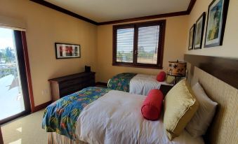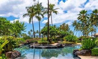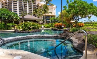 This luxurious villa is spacious and elegant and designed with the finest accommodations.  Enjoy the cool tropical breeze and breathtaking views over the pools and turquoise water of the Pacific Ocean from your villa lanai.  A gourmet state-of-the-art kitchen designed by Master Chef Roy Yamaguchi features stainless steel Sub-Zero and Wolf appliances, and for your convenience a Bosch washer and dryer laundry center.  For your comfort the master suite has a king size bed and the second suite has two twin size beds, that can be converted to a king size bed.  Your villa has two full bathrooms with the master bath featuring a soaking tub where you can relax in luxury.