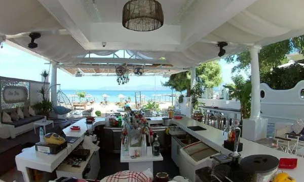What a beautiful beach bar. We went four times in our one week holiday. Nice beds and parasols. Staff great. Food and drinks were great. This is definitely the best part of the Kavos beach. Fab music too. Great chill out area. Thanks to the team. X