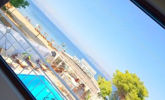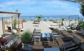 Only used the beach area - nice but 10€ each for sunbed - place was empty, compared to €5 every other place. I had a bottle of water of which the bar staff came over to sunbed and told me to put it away or he will take it away - it was a small bottle of water !! You had to buy everything at the bar ! Rude guy ! Wouldn’t go back