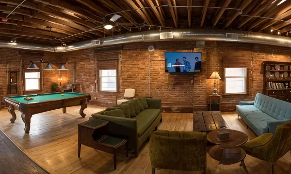 With over 3,200 sq. ft. of space, Art Alley Attic is designed with group comfort in mind. The open floor plan features multiple entertainment areas, perfect for socializing and relaxing after a day of exploring the city. Amenities include a pool table, poker table, Jacuzzi tub, and high-speed WiFi, ensuring there's something for everyone to enjoy.